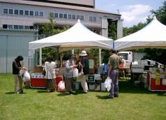 龍ヶ崎市に江戸きり子で有名なカガミクリスタルの工場があります。 このクリスタルグラスのフアン感謝デーが2003年7月5日と6日に同社工場で行われました。 今年は天候が心配されましたが7月5日は晴天でしたが6日は曇りで気温が低く(20度)前日とは違い当店もホットコーヒーの注文に追われました。真夏なのに用意が十分でなかったのでバタバタでした。 当日は市販価格の半額近くで販売される為遠くより多くのフアンが駆けつけます。2日で1万人を超えたようです。年に3回、3月、7月12月行われます。 龍ヶ崎物産会も同社のご好意で出店させて頂いています。 私たちのとむとむも物産会に入会していますので毎回出店しています。コーヒー(アイス、&ホット) ¥150、ウィンナーコーヒーとコーヒーフロートは¥250と大サービスです。今度は12月に行われますので是非お出かけください。詳細はまたご連絡します。 |